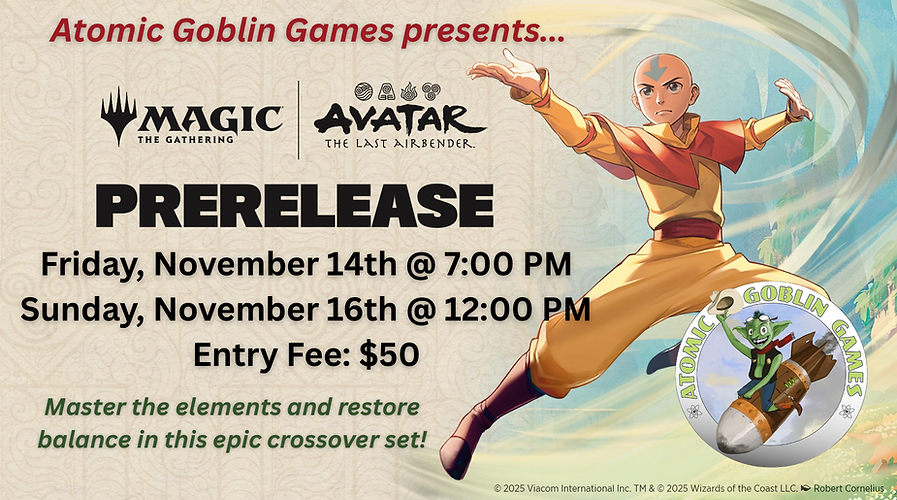Our little Goblin is modeling off our brand new Atomic Goblin Games gift cards! The perfect gift for that gamer goblin who you're just not sure what to add to their collection. We have set a range of $12 to $100 dollars (which is about 2 weekly event entries or 4 drinks to an average, 2 board games)